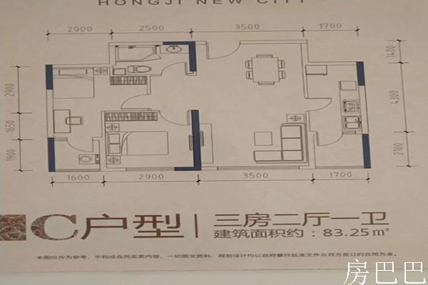 两房:83平
